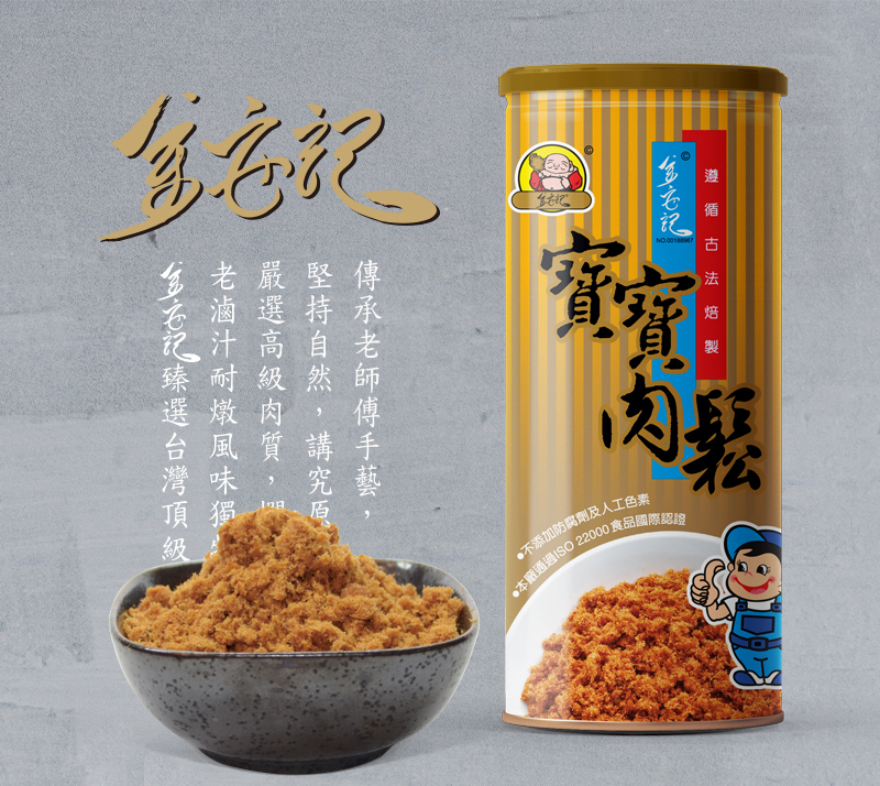 | 味道 | 原味豬肉鬆(300g), 寶寶肉鬆(300g), 旗魚鬆(280g), 海苔芝麻豬肉鬆(300g) |