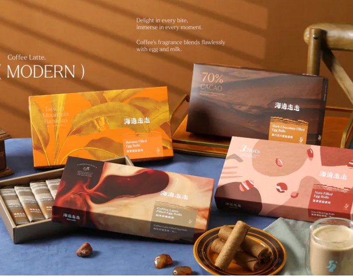 使用哥倫比亞咖啡豆及腰果研磨調配成蛋捲餡,帶有咖啡及堅果感的濃郁風味如同拿鐵一般。每一口層綿密而不甜膩,彷彿是香濃拿鐵咖啡的完美延伸,與蛋捲交織出一種獨特的美味!