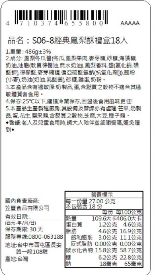 保存期限 : 常溫放置 30 天