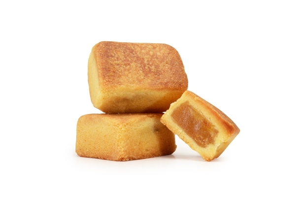 綠豆椪外皮由油皮與油酥層層堆疊製成,表層較酥,宅配過程易碰撞,造成表皮脫落乃正常現象。