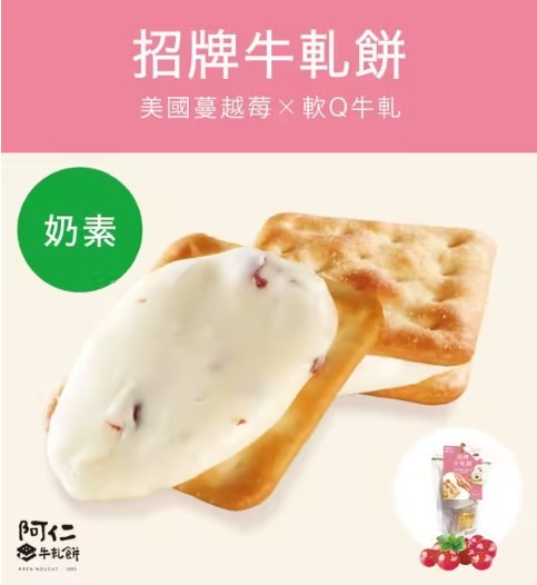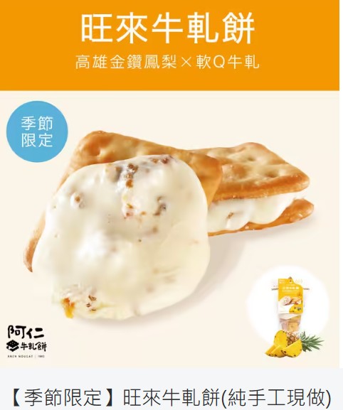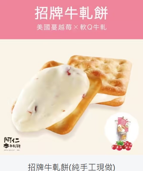 | 味道 | OREO牛軋餅, 【奶素】招牌牛軋餅 (獨立包裝), 【季節限定】旺來牛軋餅, 抹茶腰果牛軋餅, 招牌牛軋餅, 花生牛軋餅 |